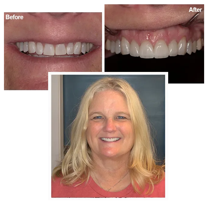 The result is a beautiful, natural-looking smile and long-term stability. Laura shares that her teeth look amazing and that she feels happier and more confident than ever. In fact, people do not ask if she had dental work done. They simply tell her she looks younger, healthier, and happier. Today, Laura is in a steady, healthy state and comes in for routine visits knowing her smile is built to last.